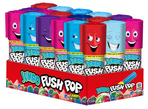 - The Jumbo Push Pop is a great alternative to traditional candy bars and lollipops. It's easy to carry around, and there's no need to worry about getting your hands dirty.